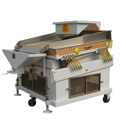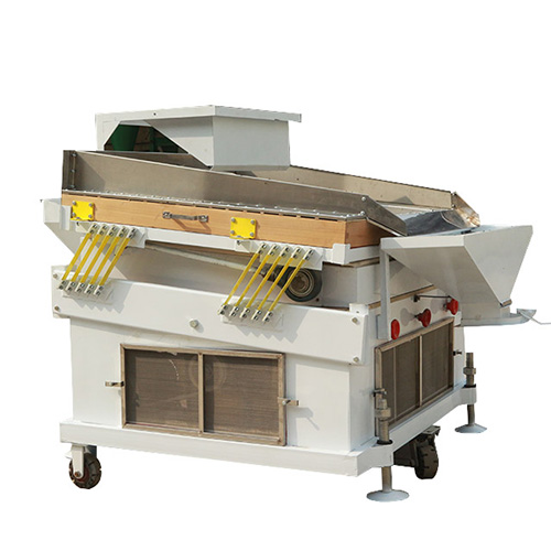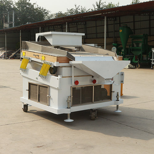 原理:根據物料中的作物和沙子的密度比重差異,通過調整風壓、政府等參數,使密度比重較大的石子貼著篩面由低向高運動,比重較小的作物由高向低運動,從而達到分離的目的。